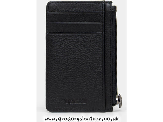 Black Anson Zip Round Leather Purse with Tab by Yoshi