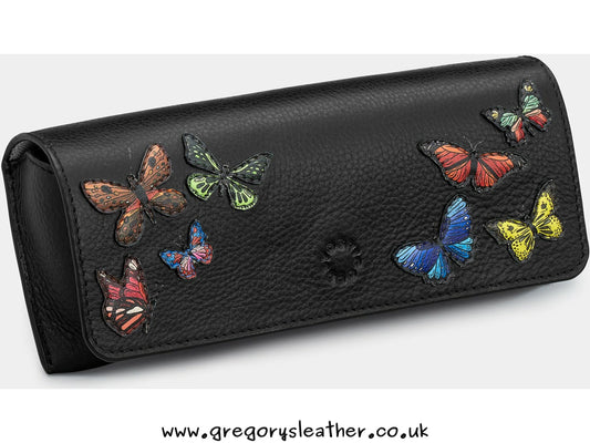 Black Amongst Butterflies Flap Over Zip Around Leather Purse by Yoshi