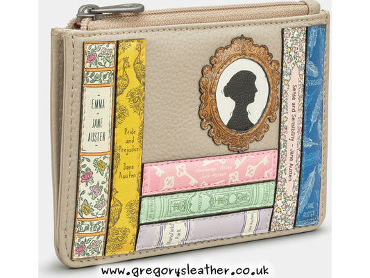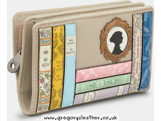 Warm Grey Jane Austen Bookworm Zip Top Leather Purse by Yoshi