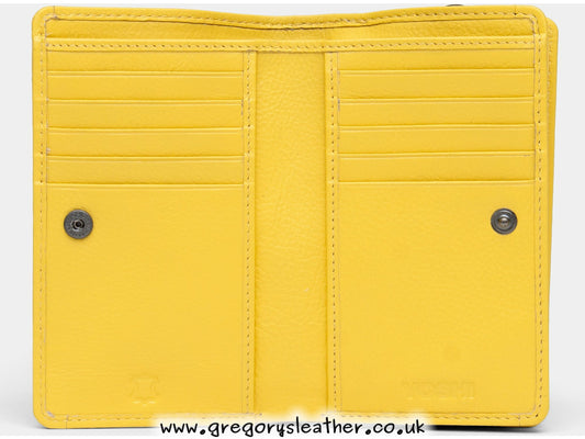 Yellow Buttercup Wildflowers Wildflowers Flap Over Zip Around Leather Purse by Yoshi