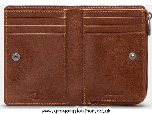 Warm Grey Country Cottage Zip Top Leather Purse by Yoshi