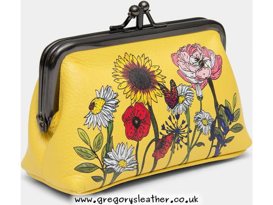 Yellow Buttercup Wildflowers Wildflowers Leather Triple Frame Purse by Yoshi