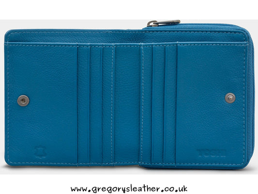 Teal Peacock Plume Leather Zip Round Flap Over Purse by Yoshi