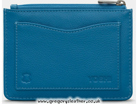 Teal Peacock Plume Zip Top Leather Purse by Yoshi