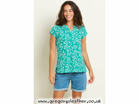 Green Bamboo Leaves Notch Neck Tshirt by Brakeburn