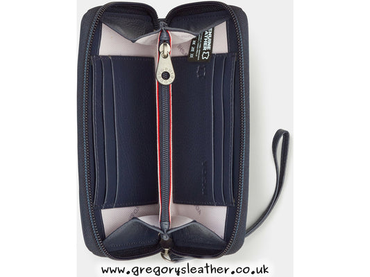 Navy Jane Austen Bookworm Zip Round Leather Purse With Strap by Yoshi