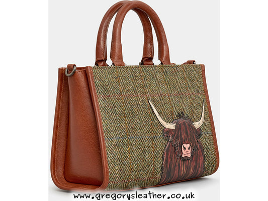 Highland Cow Harris Tweed Leather Messenger Bag by Yoshi