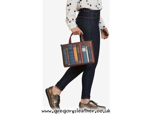 Brown Bookworm Library Leather Grab Bag by Yoshi