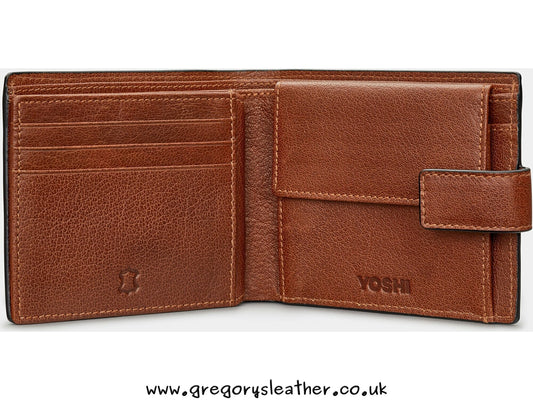 Brown Extra Capacity Leather Wallet with Tab by Yoshi