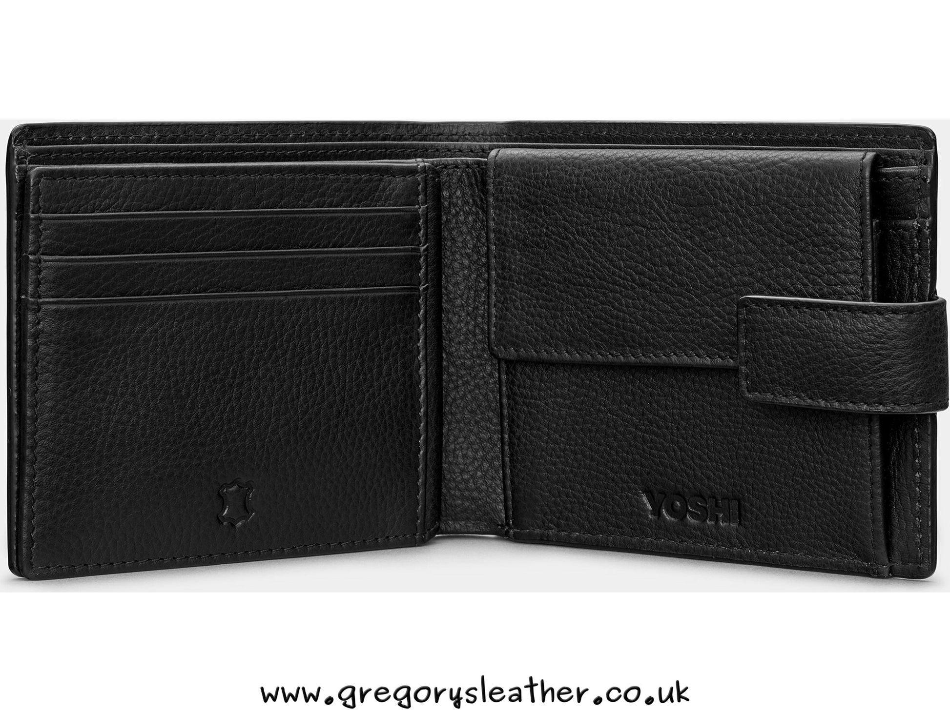 Black Extra Capacity Leather Wallet with Tab by Yoshi