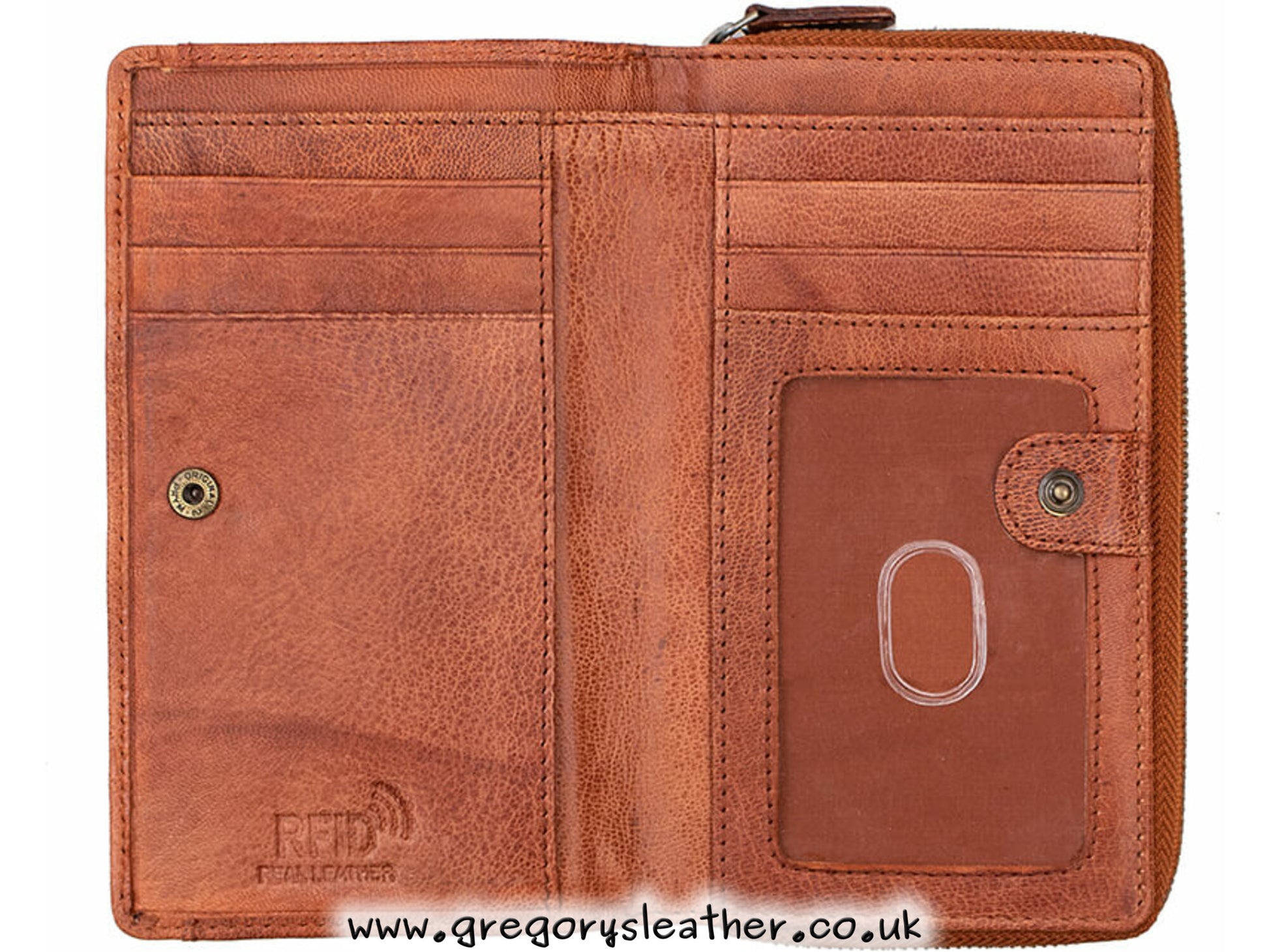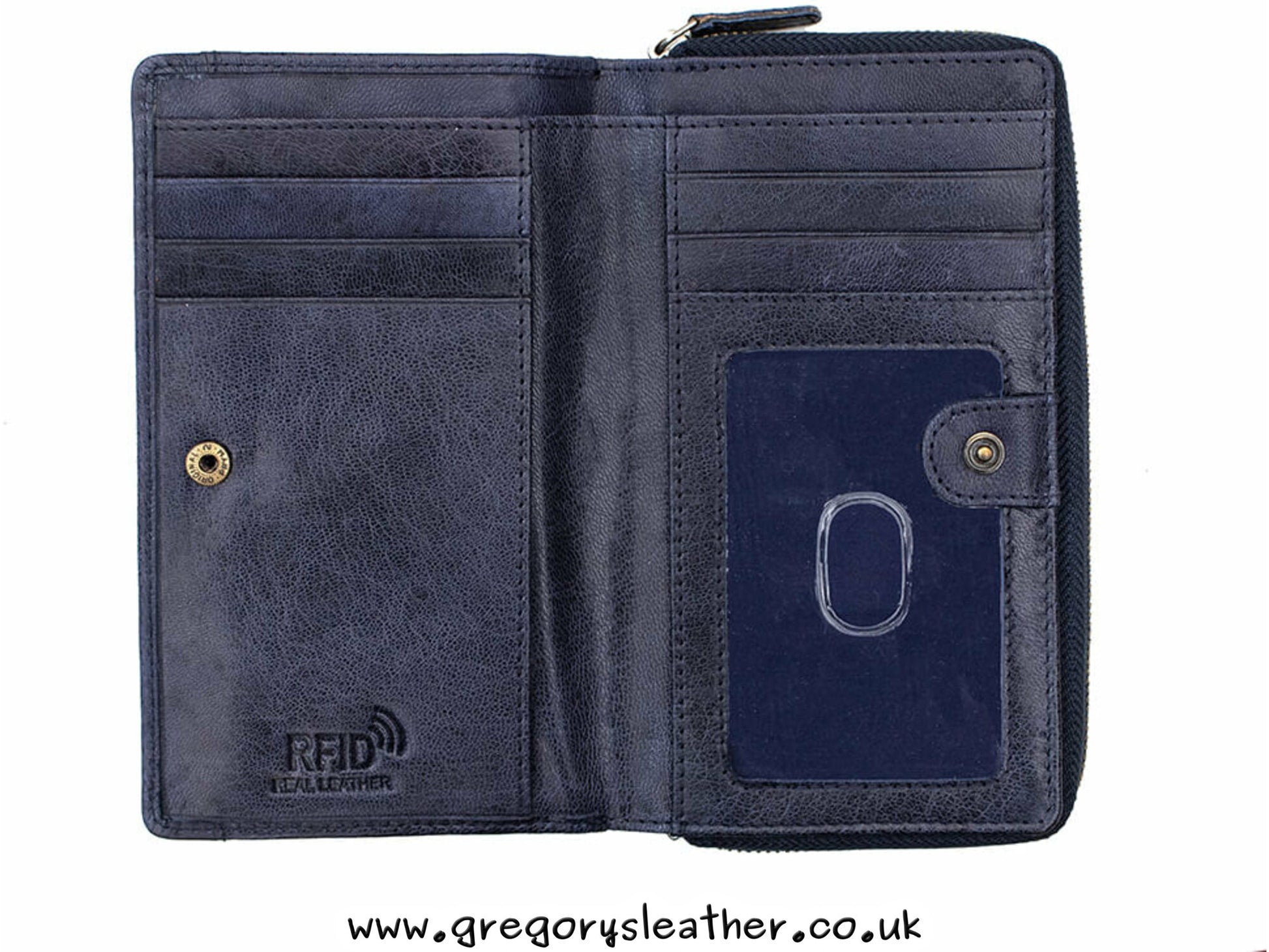 Expertly handcrafted out of the Arizona waxy leather its engineered to last. The design is simple to use, held together by a popper, just open it up and you have 5 card slots, ID window and large note compartment. On the rear you have a large zipped coin pocket for all your loose change and bits.