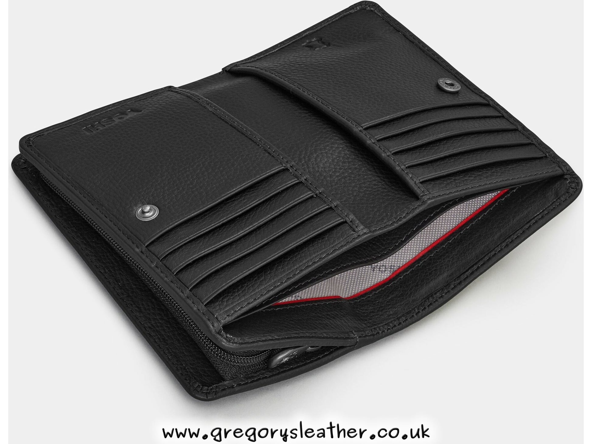 A vibrant rainbow coloured highland cow design has been carefully appliqued onto the front of this soft black leather flap over purse and there is plenty of room for cards, cash and coins. It also has secure RFID Blocking technology.