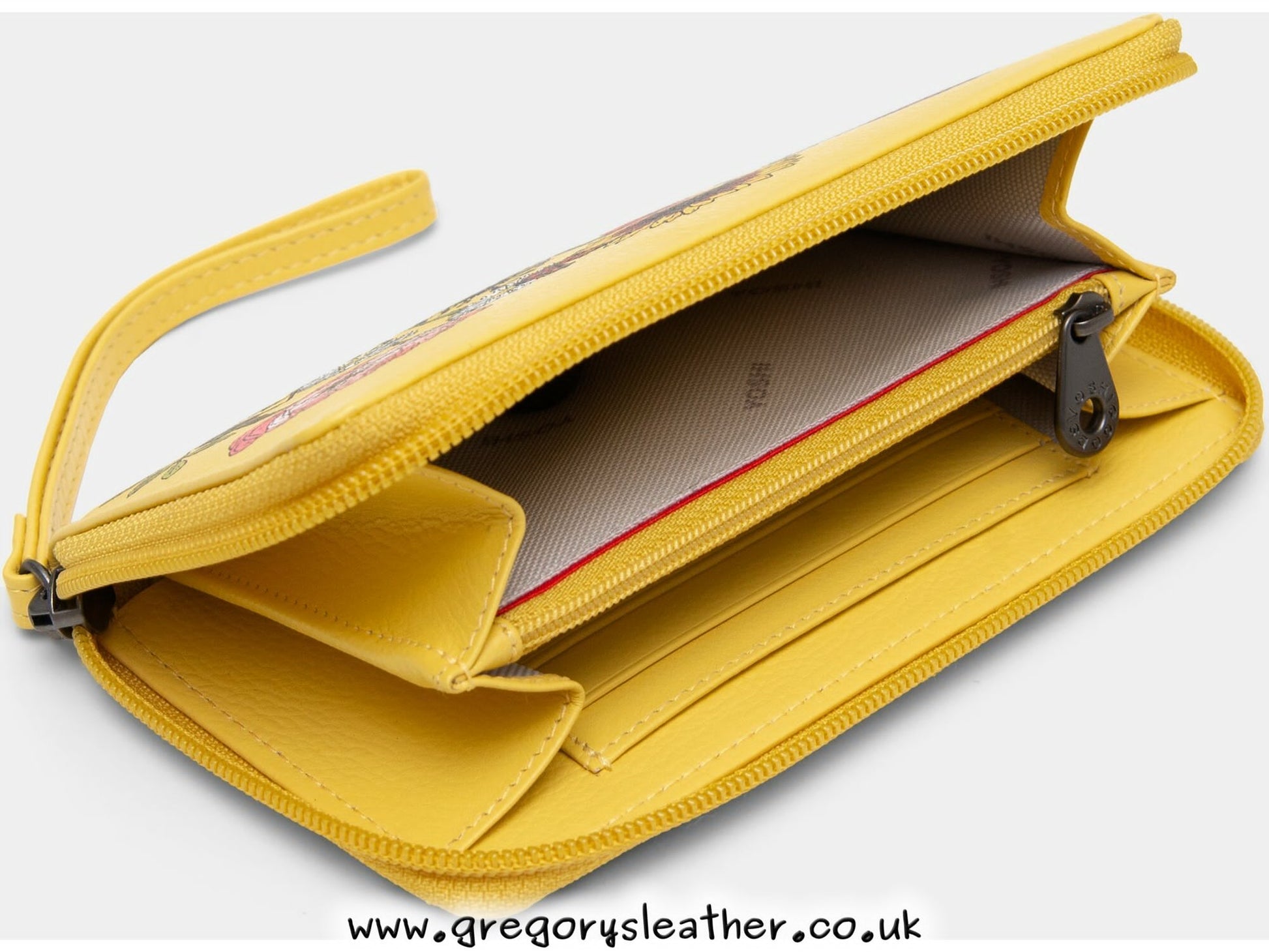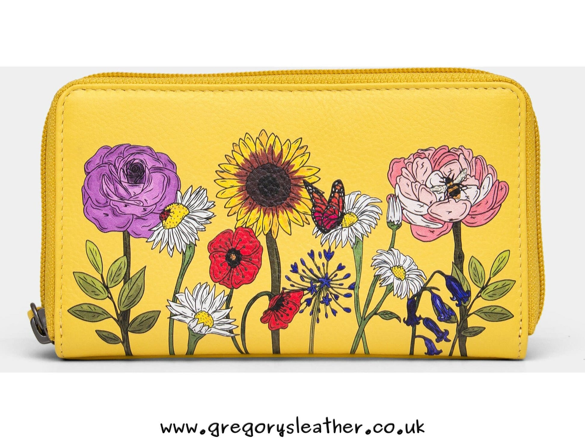 Yellow Buttercup Wildflowers Wildflowers Zip Round Leather Purse With Strap by Yoshi