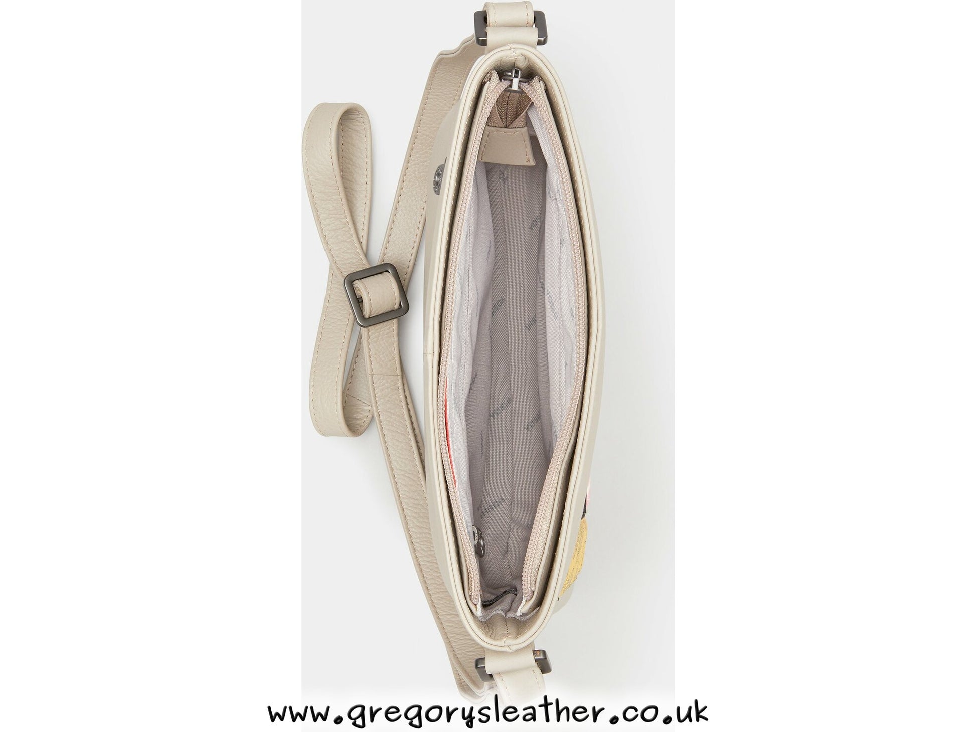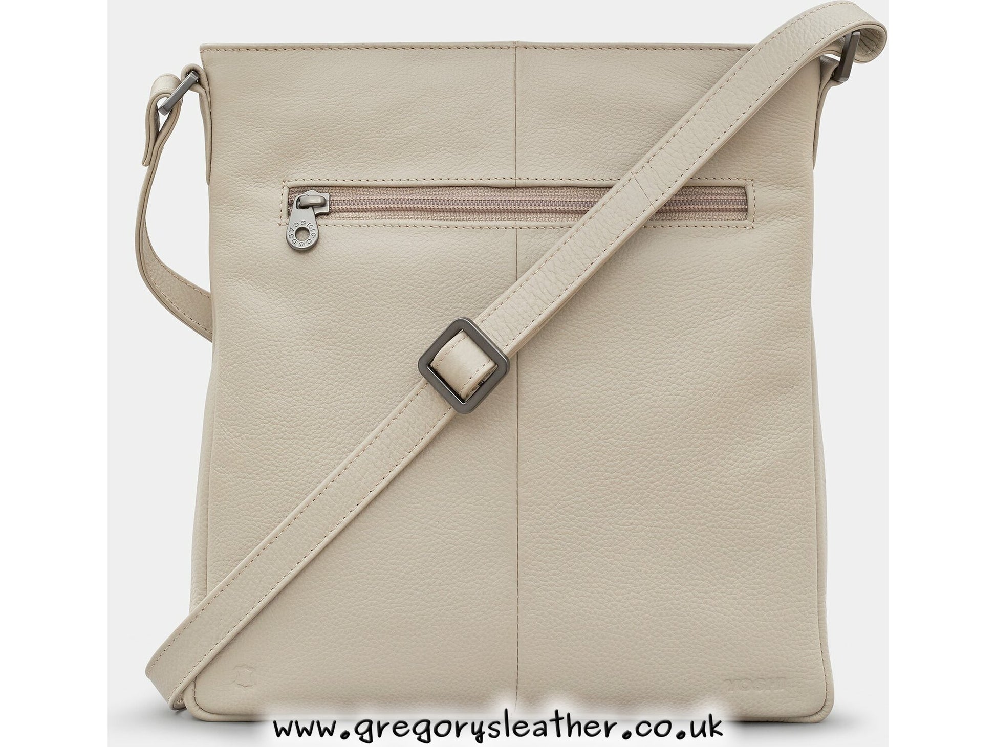 Warm Grey Leather Cross Body Grab Bag