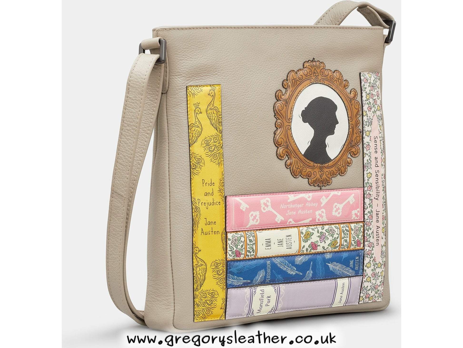 Warm Grey Jane Austen Bookworm Bryant Leather Cross Body Bag by Yoshi
