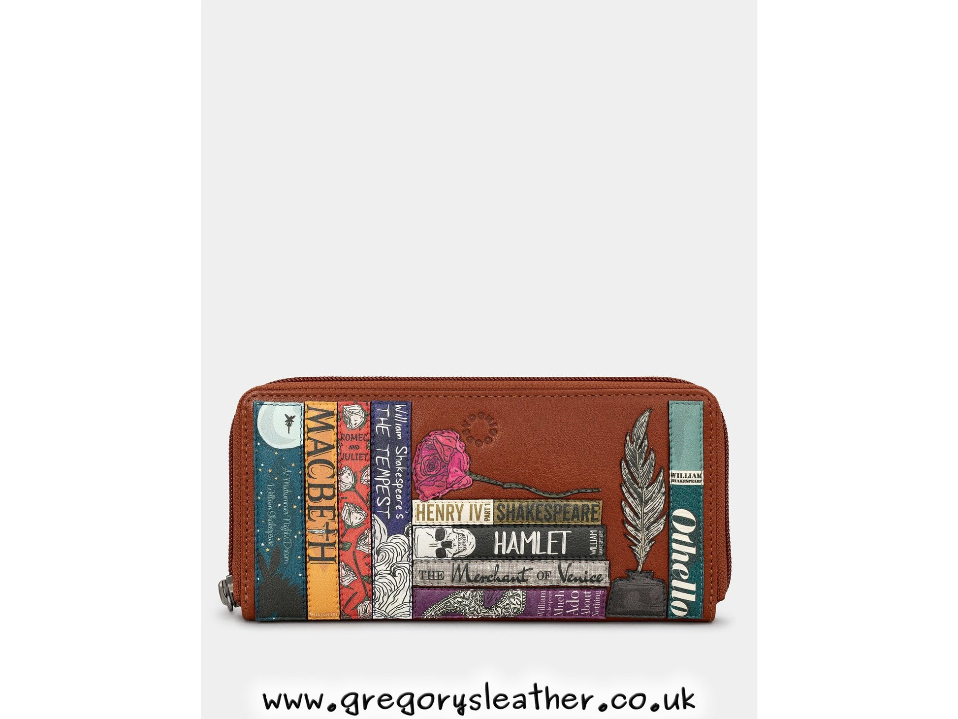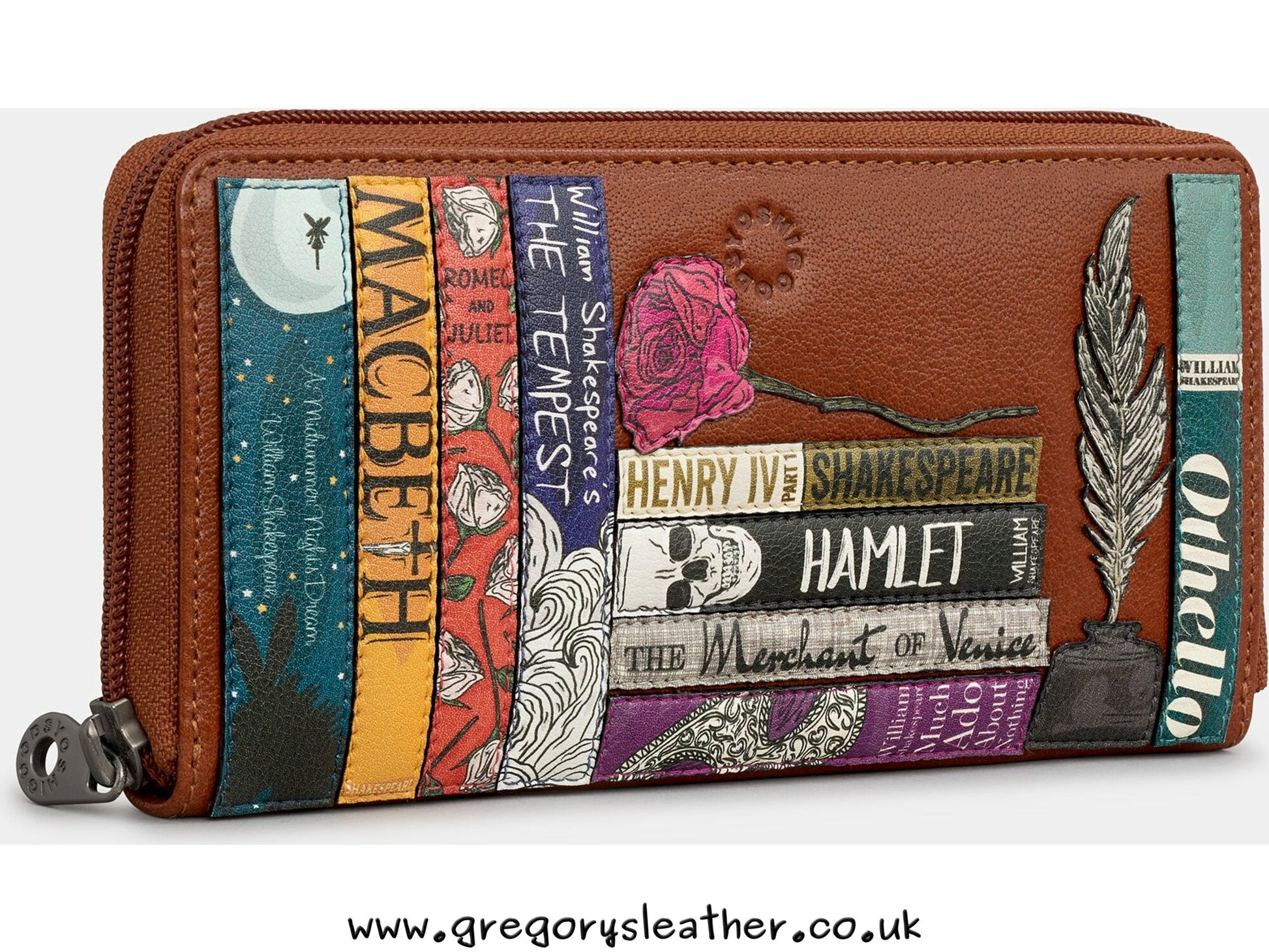 Tan William Shakespeare Shakespeare Bookworm Zip Round Leather Purse by Yoshi