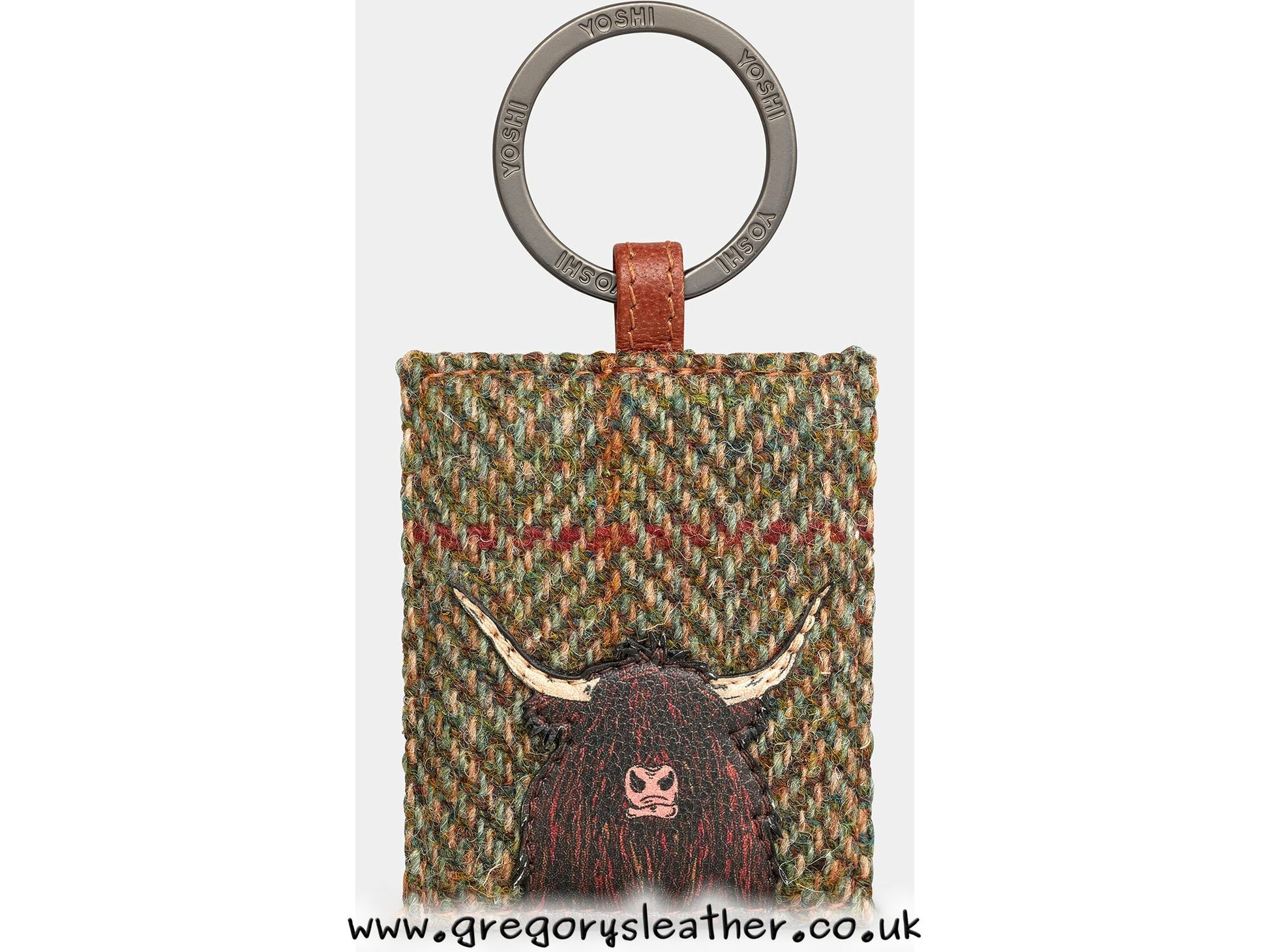 Brown Highland Cow Tweed Leather Keyring by Yoshi