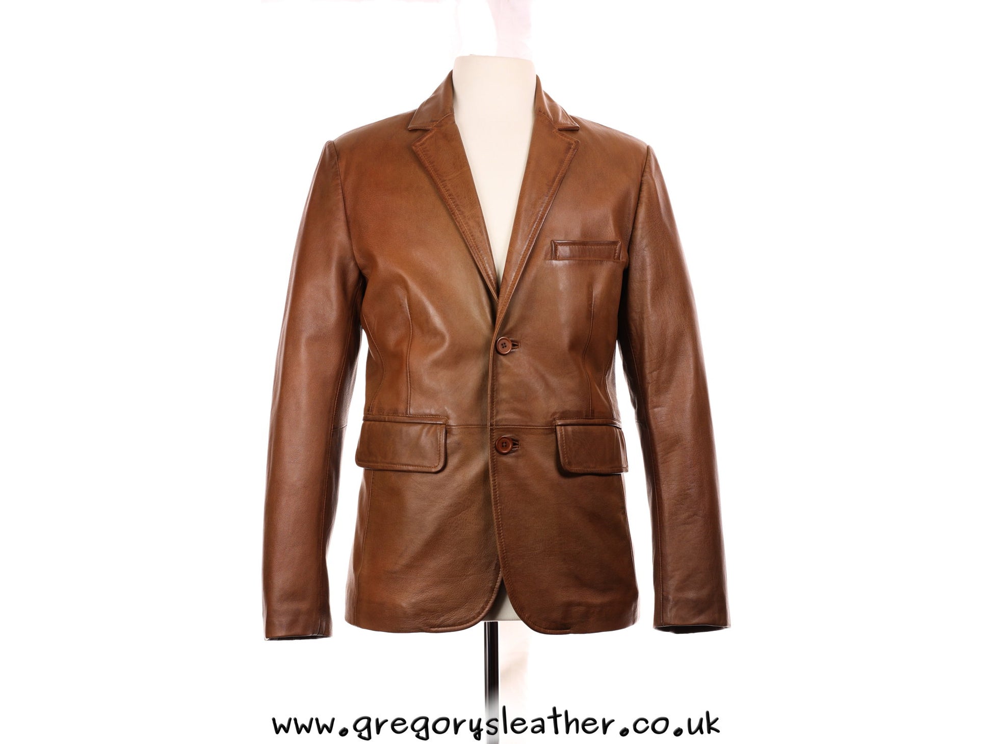Tan Leather Two Button Blazer Style Jacket by Ashwood